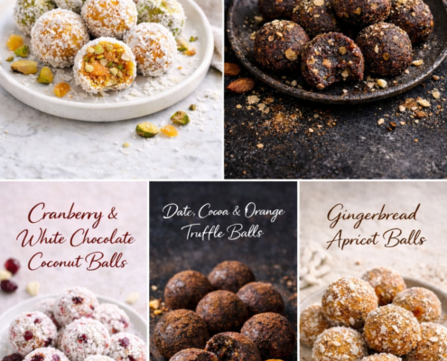 Here are 5 festive no-bake treats in the same spirit as apricot balls — simple, pantry-friendly, and perfect for Christmas platters, hampers, or client gifts.