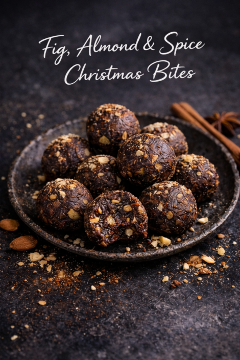 These fig, almond & spice Christmas bites are rich, aromatic and beautifully festive. Think warm spices, nutty texture and deep fig sweetness — like a little nod to panforte, rolled into a bite-sized treat. Perfect for slow afternoons and holiday grazing boards.